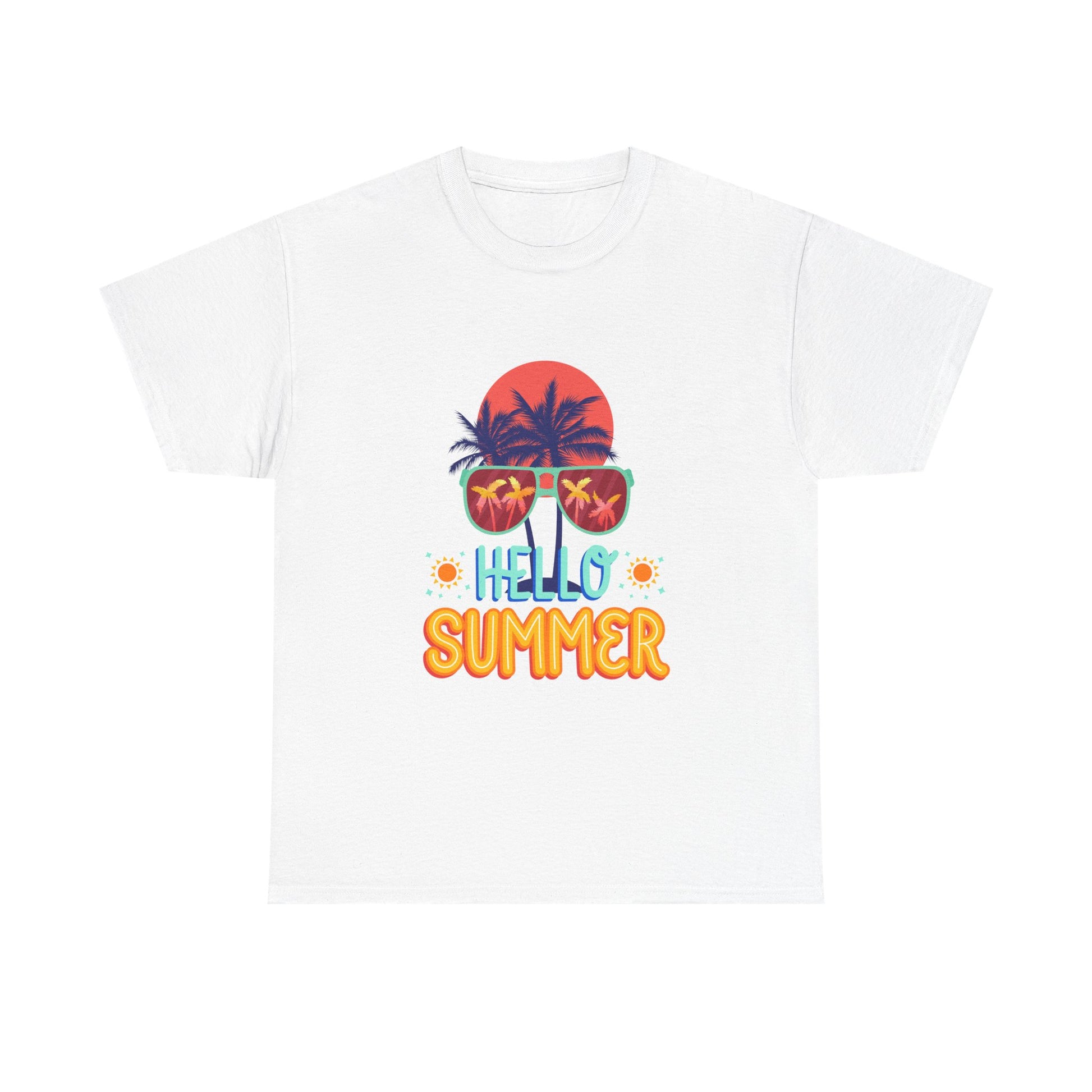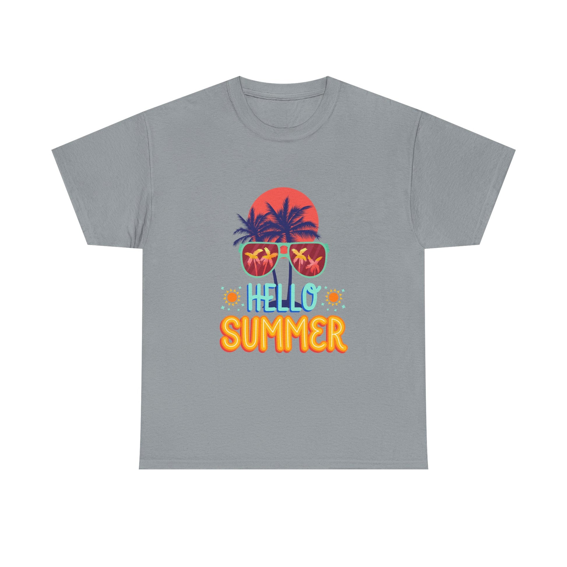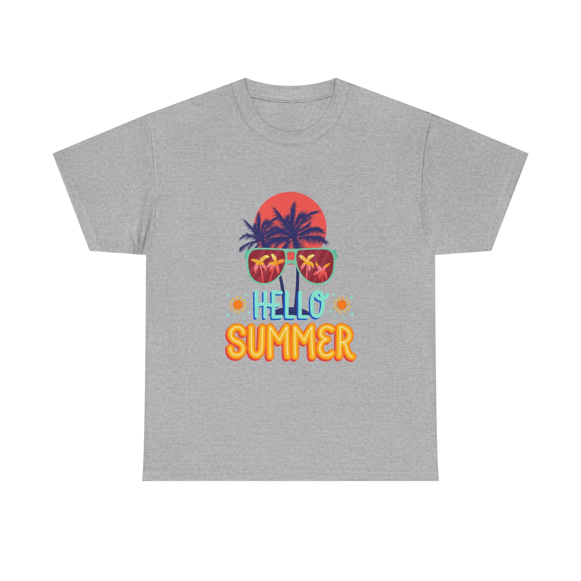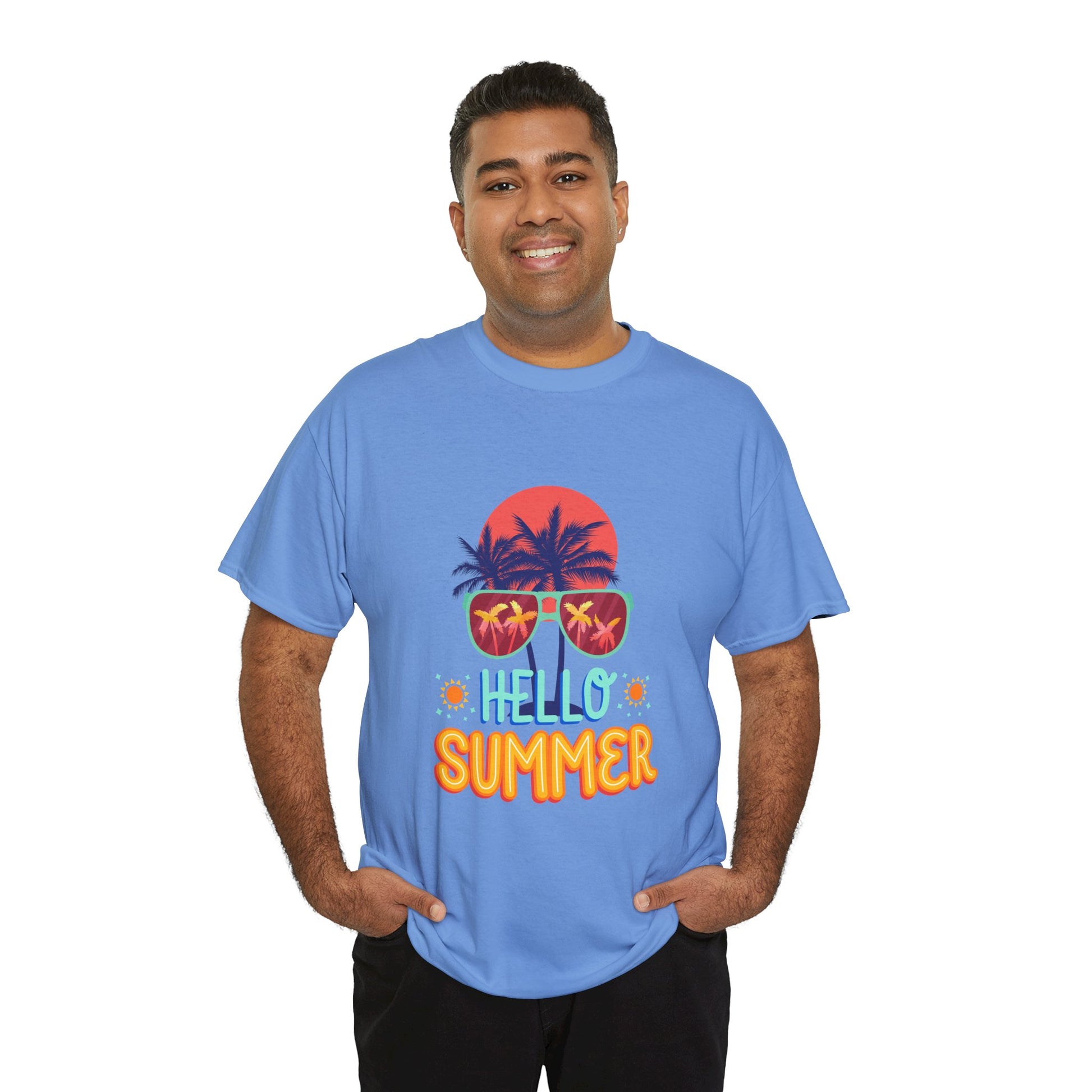 Hello Summer Unisex Heavy Cotton Tee – Vibrant Graphic Tee for Beach Lovers
