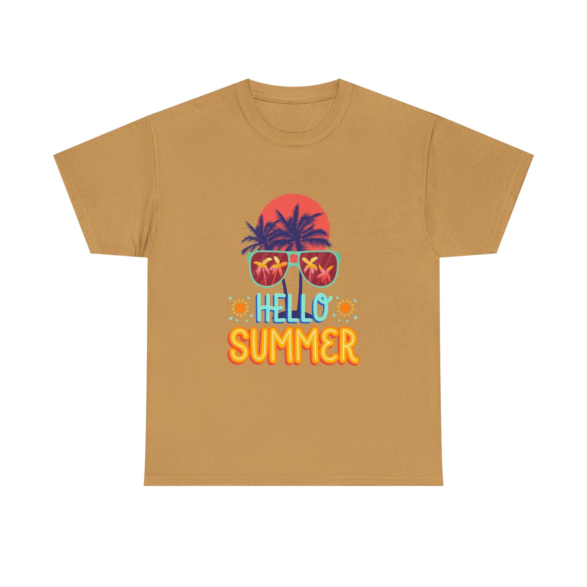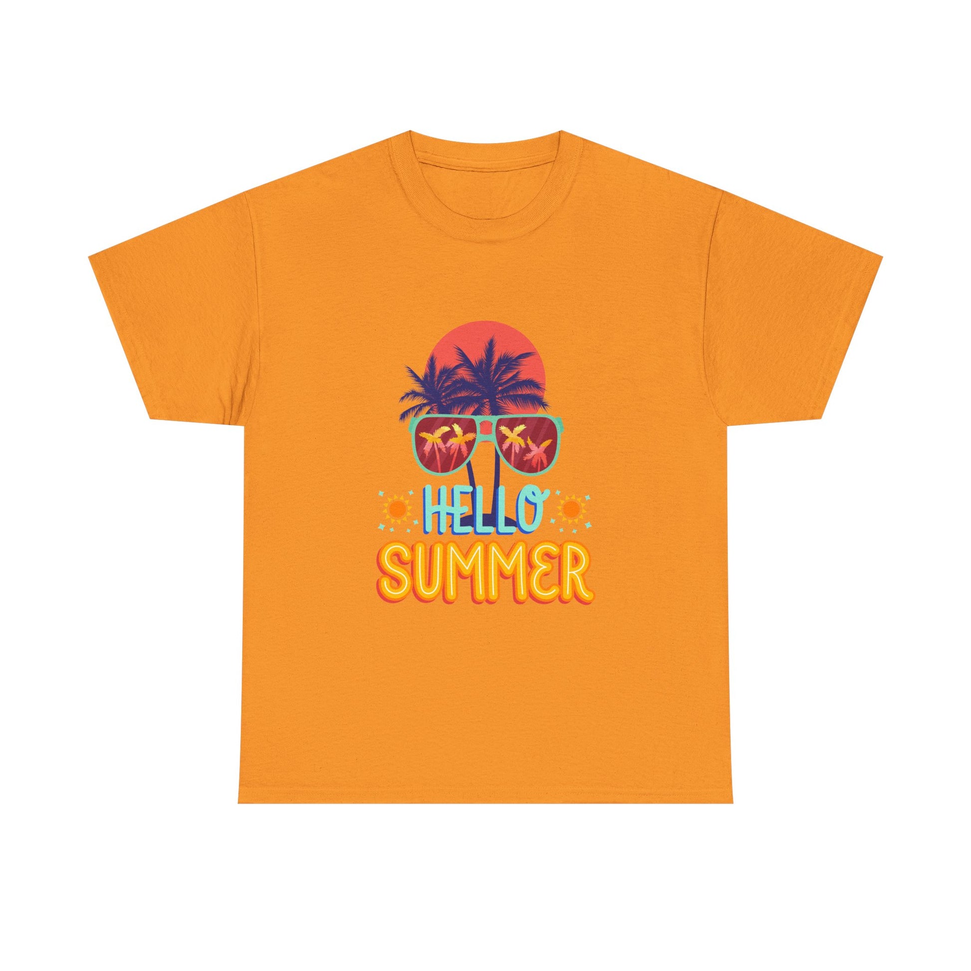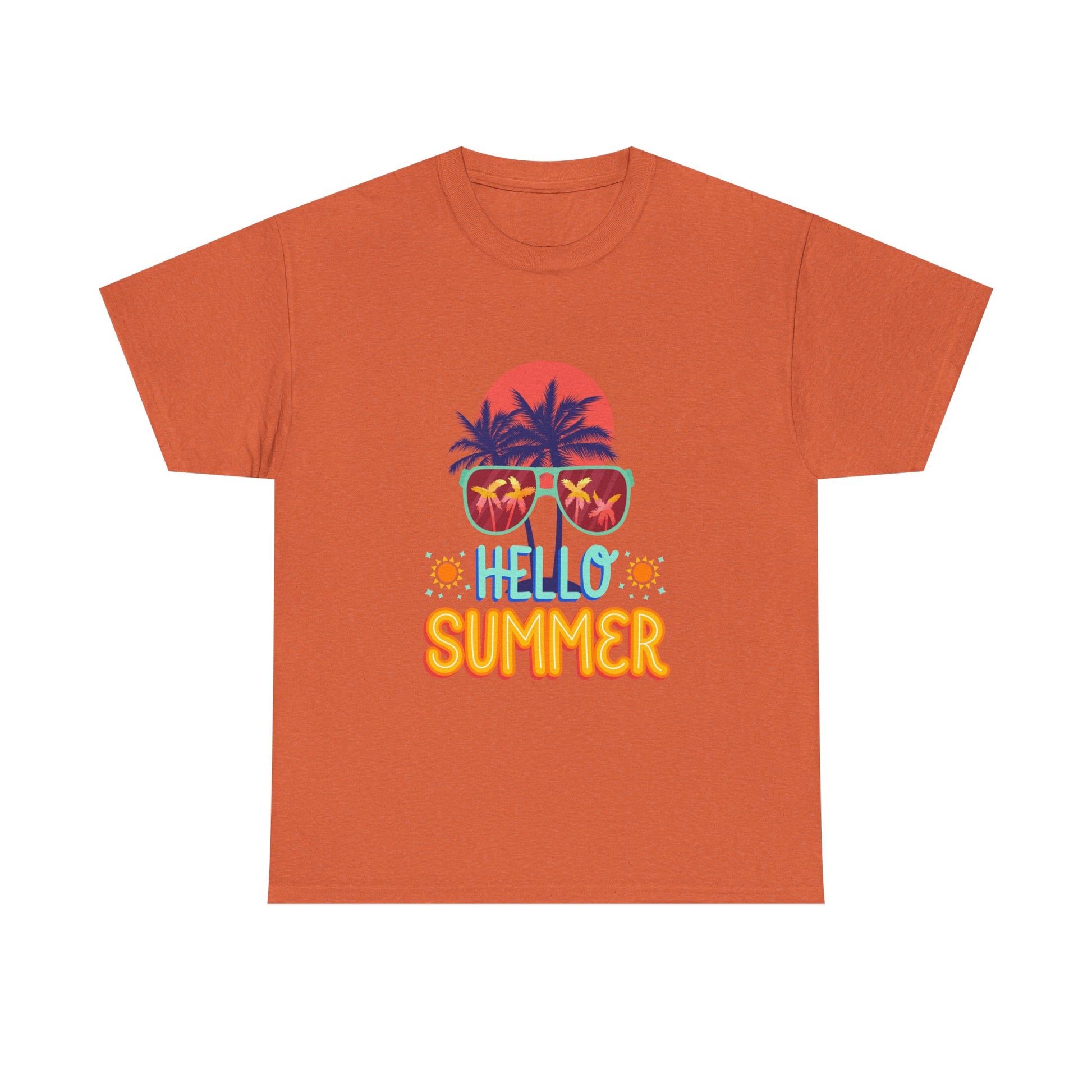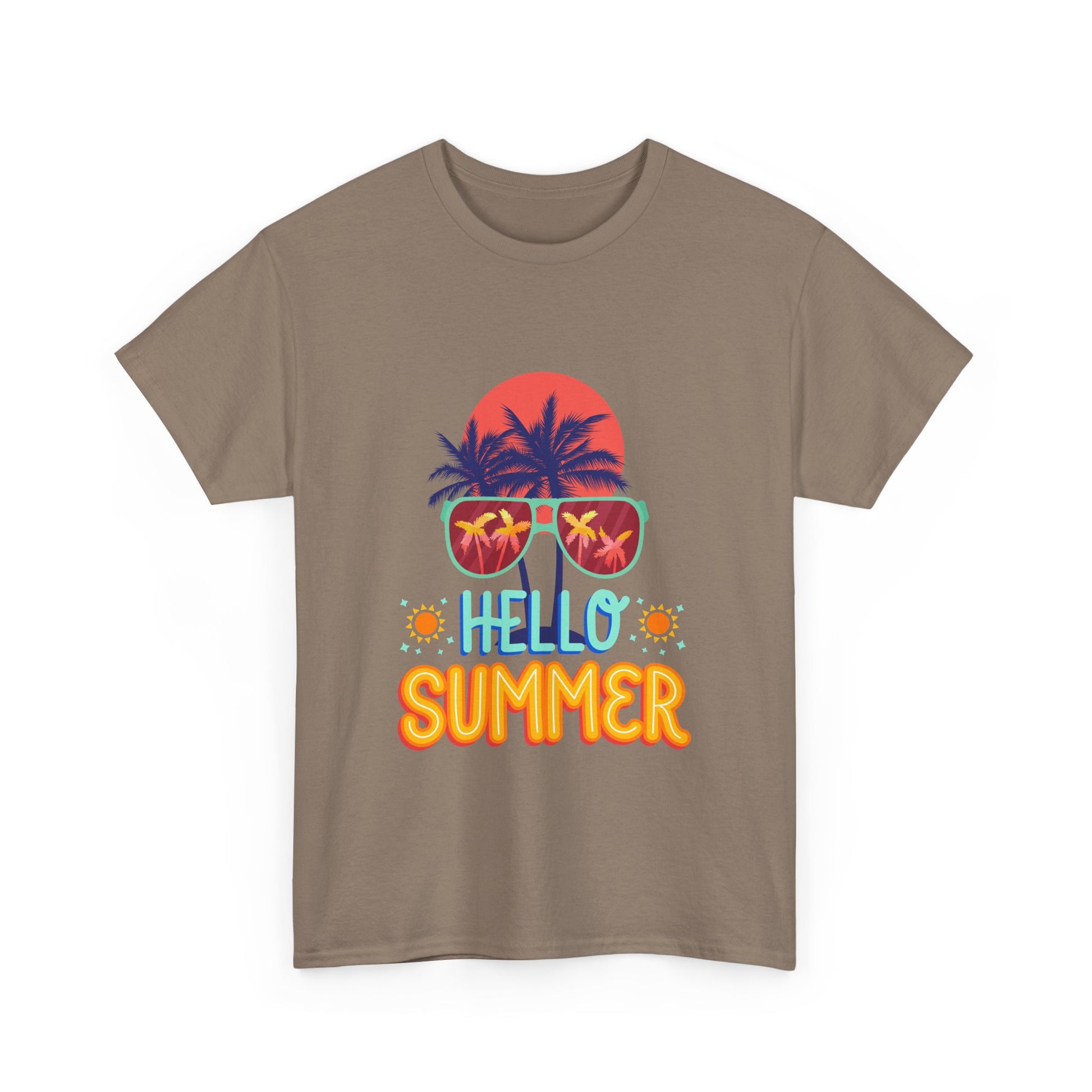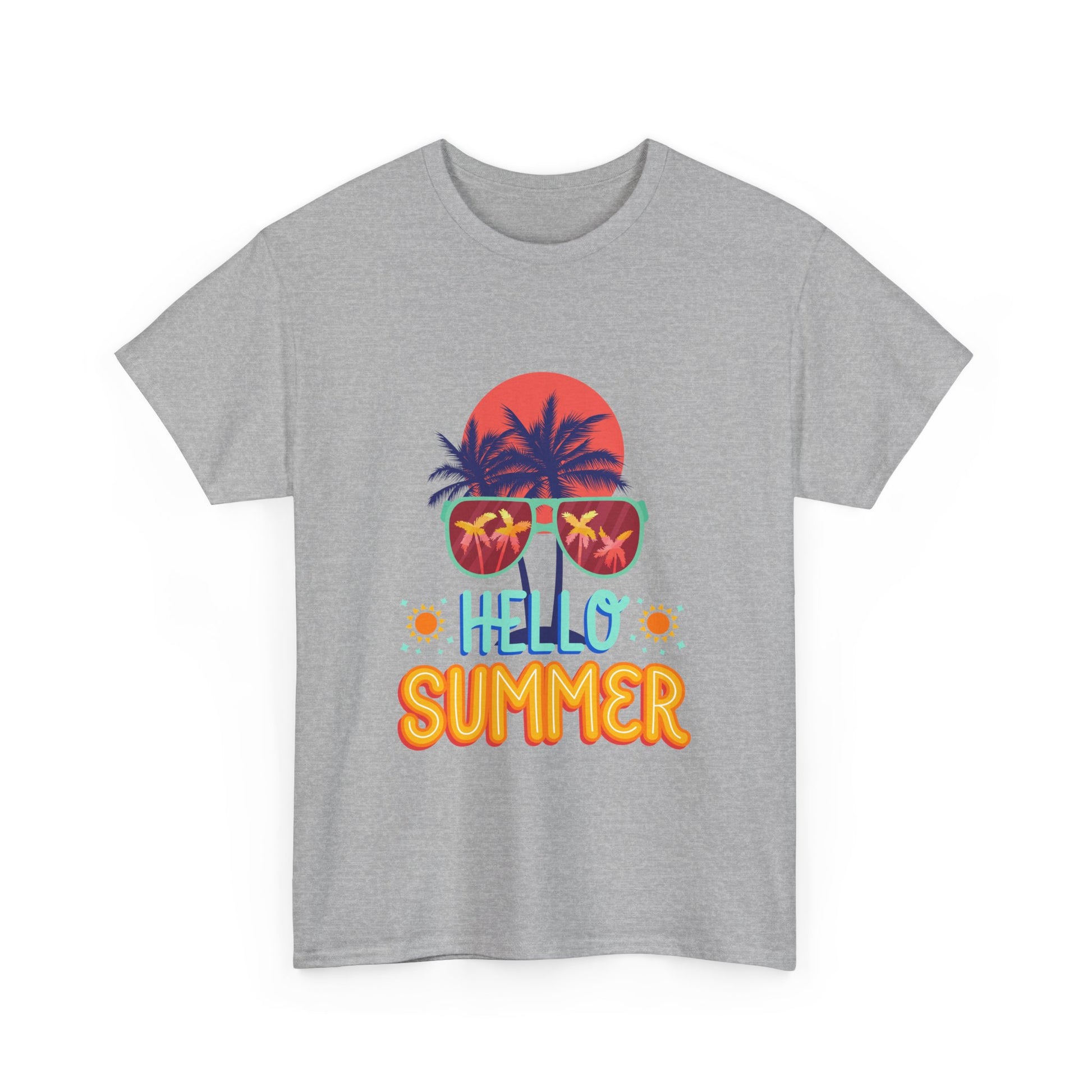 Hello Summer Unisex Heavy Cotton Tee – Vibrant Graphic Tee for Beach Lovers
